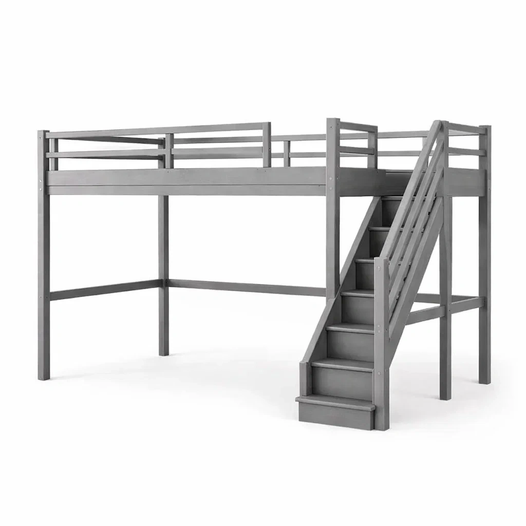 Ce lit mezzanine est fabriqué en bois de pin avec une finition de peinture. Il est conçu pour être utilisé par des enfants âgés de 6 à 12 ans et est conforme à la norme EN747.