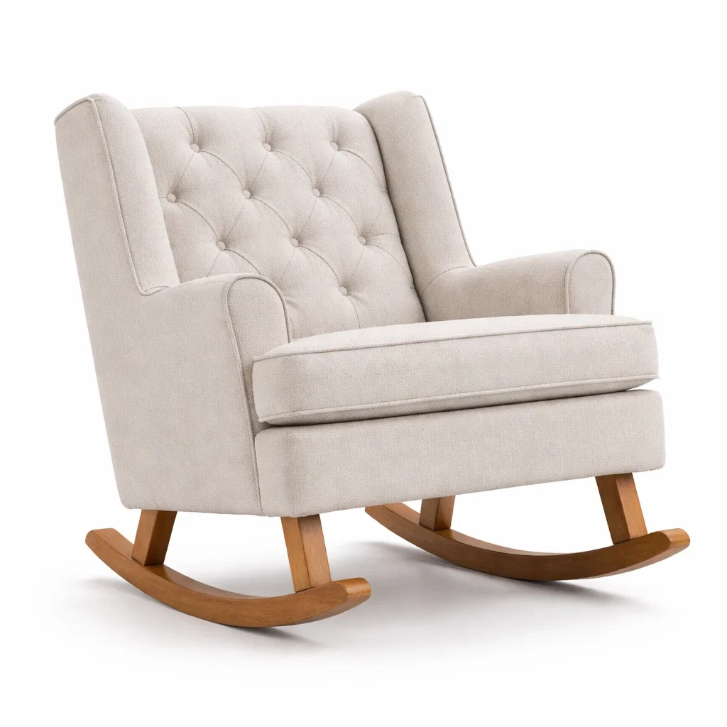 Tissu Beige et Chêne Fauteuil à bascule